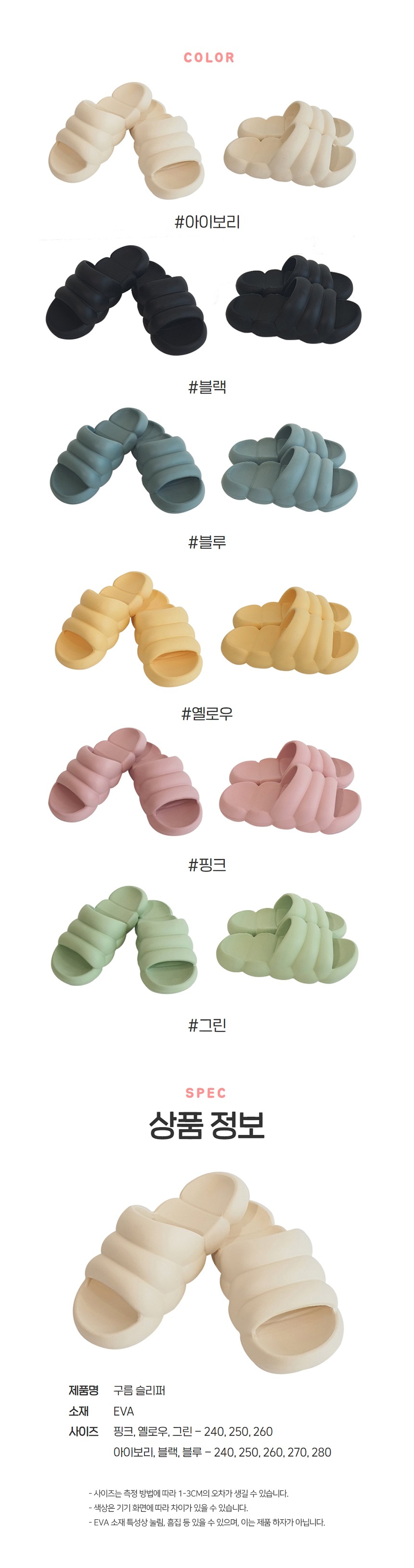 그린, 아이보리, 블랙, 블루, 옐로우, 핑크